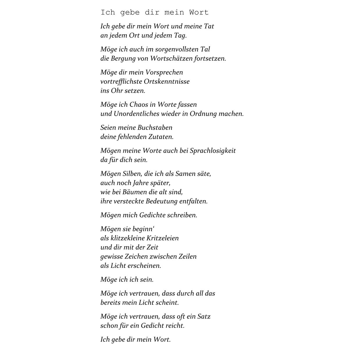 Meine Poesie findet dabei immer wieder neue Formen, in denen ich sie in die Welt bringe.
